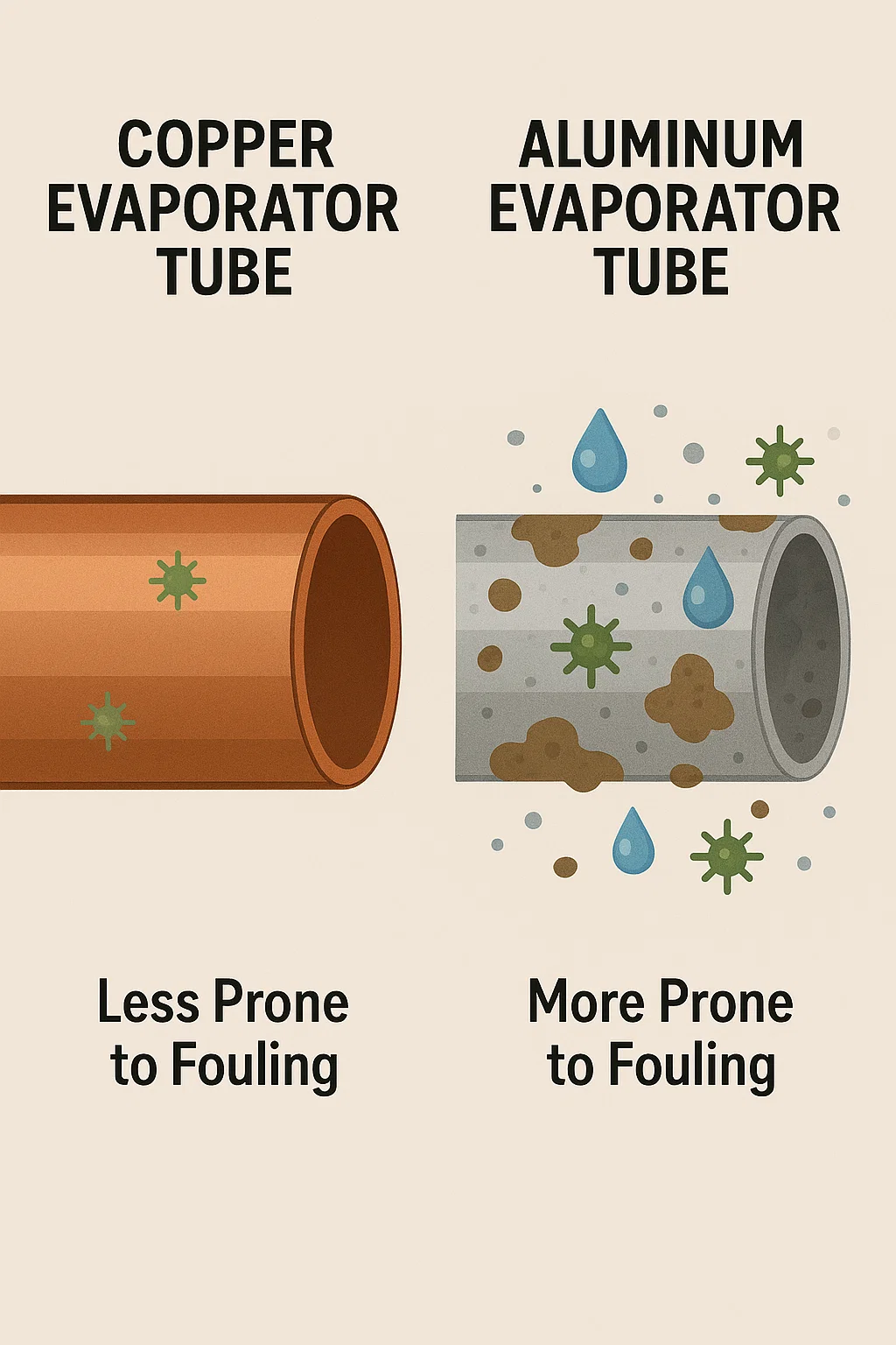 | Jellegzetes | Réz Evaporator Tubes | Alumínium Evaporator Tubes |