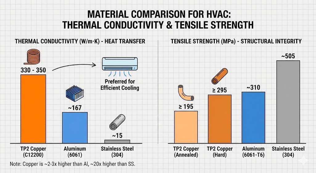 Legyen szó az otthonunk kényelmét biztosító klímaberendezésekről, a biztonságos vizet biztosító vízvezetékekről vagy az elektromos járművek következő generációjának hűtőrendszereiről, a TP2 továbbra is a modern hő- és folyadékgazdálkodás alapja. A nagynyomású, magas hőmérsékletű vagy nagy hatékonyságú alkalmazásokhoz való anyag kiválasztásakor a TP2 (C12200) a bevált iparági etalon.