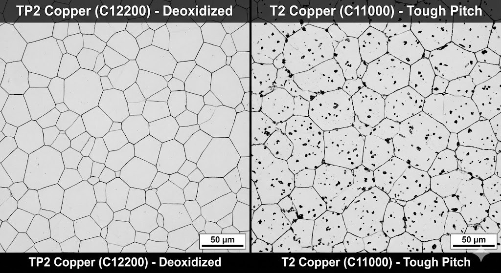 A „P” a TP2-ben azt jelenti Foszfor , amelyet az olvasztási folyamat során adnak hozzá az oxigén eltávolítására. A réz „deoxidálásával” a gyártók olyan anyagot hoznak létre, amely lényegesen megbízhatóbb az ipari alkalmazásokhoz, mint a hagyományos tiszta réz, különösen hő és hegesztés esetén.