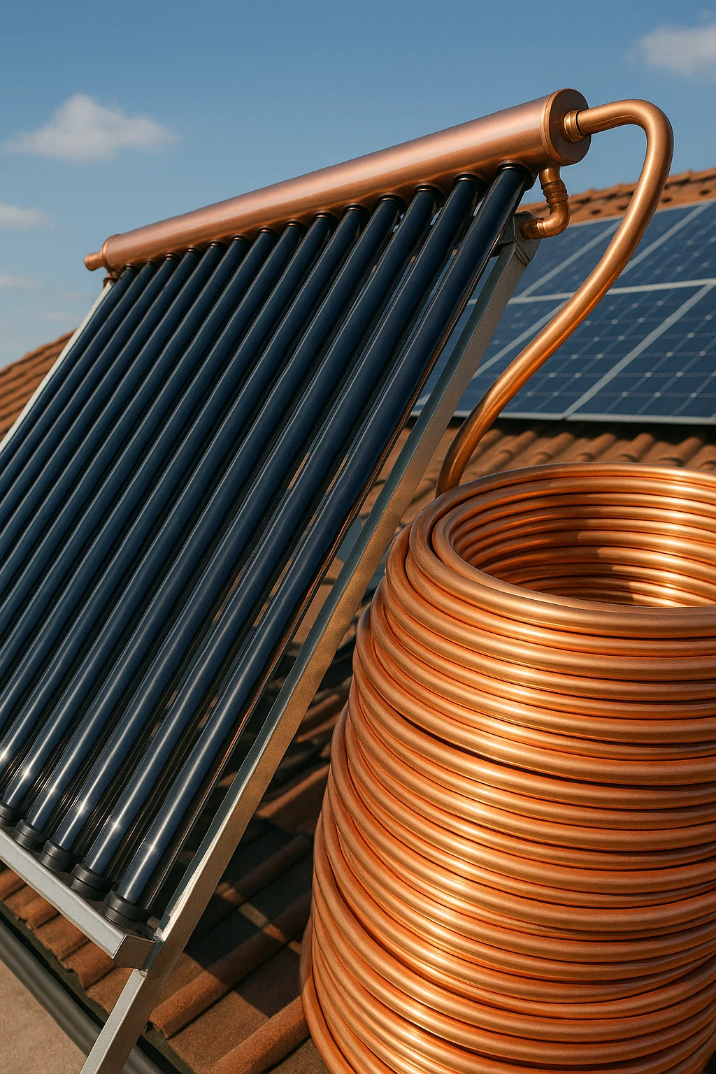 A megújuló energia iránti kereslet növekedésével a rézcsövek egyre előtérbe kerülnek a napkollektoros rendszerekben. A réz kiváló hővezető képessége ideális anyaggá teszi a napenergia összegyűjtéséhez és hőenergiává alakításához vízmelegítéshez. A rézcsövek használata a napkollektorokban növeli a hatékonyságot és a teljesítményt, segít csökkenteni a hagyományos energiaforrásoktól való függőséget, és hozzájárul a környezetbarátabb, fenntarthatóbb életvitelhez. A réz korrózióálló tulajdonságai biztosítják a napkollektoros rendszerek hosszú élettartamát és megbízhatóságát.